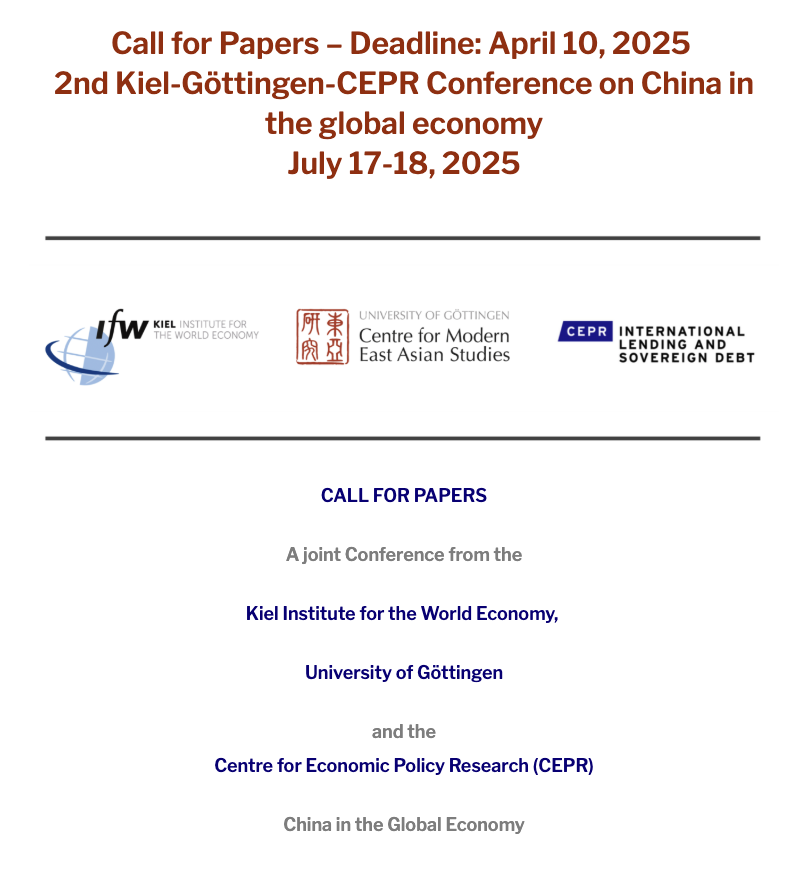 Call for Papers - Deadline: April 10, 2025 2nd Kiel-Göttingen-CEPR Conference on China in the global economy July 17-18, 2025
