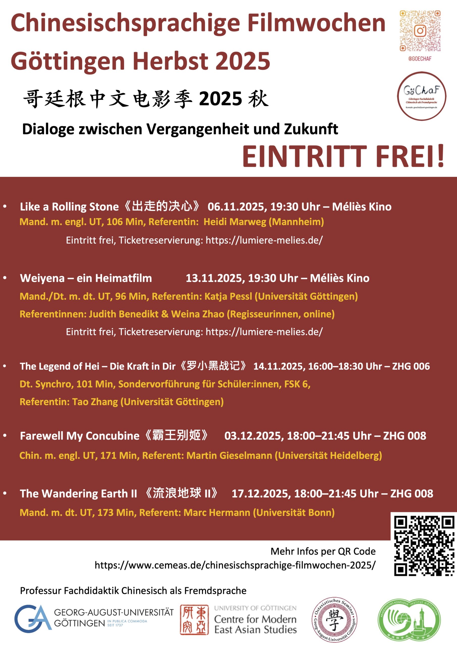 Wir laden Sie herzlich zu den Chinesischsprachigen Filmwochen Göttingen 2025 – Herbst/Winter ein.