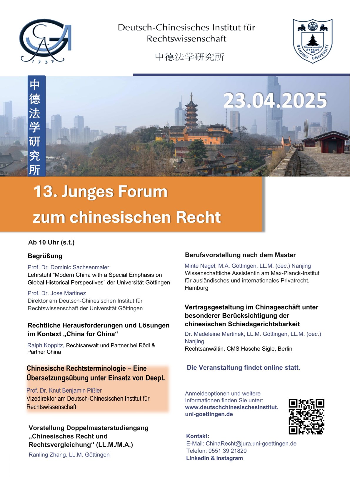 Chinesischsprachige Filmwochen Göttingen Herbst/Winter 2025 哥廷根中文电影季 2025 – 秋冬 Dialoge zwischen Vergangenheit und Zukunft EINTRITT FREI! 17. 12. 2025 (Mi), 18:00 – 21:45 Uhr – ZHG 008, Universität Göttingen The Wandering Earth II 《流浪地球 II》 (China, 2023, 173 Min) Sprache: Chinesisch mit deutschen Untertiteln Referent: Marc Hermann (Universität Bonn) Achtung: Laufzeit ca. 173 … |